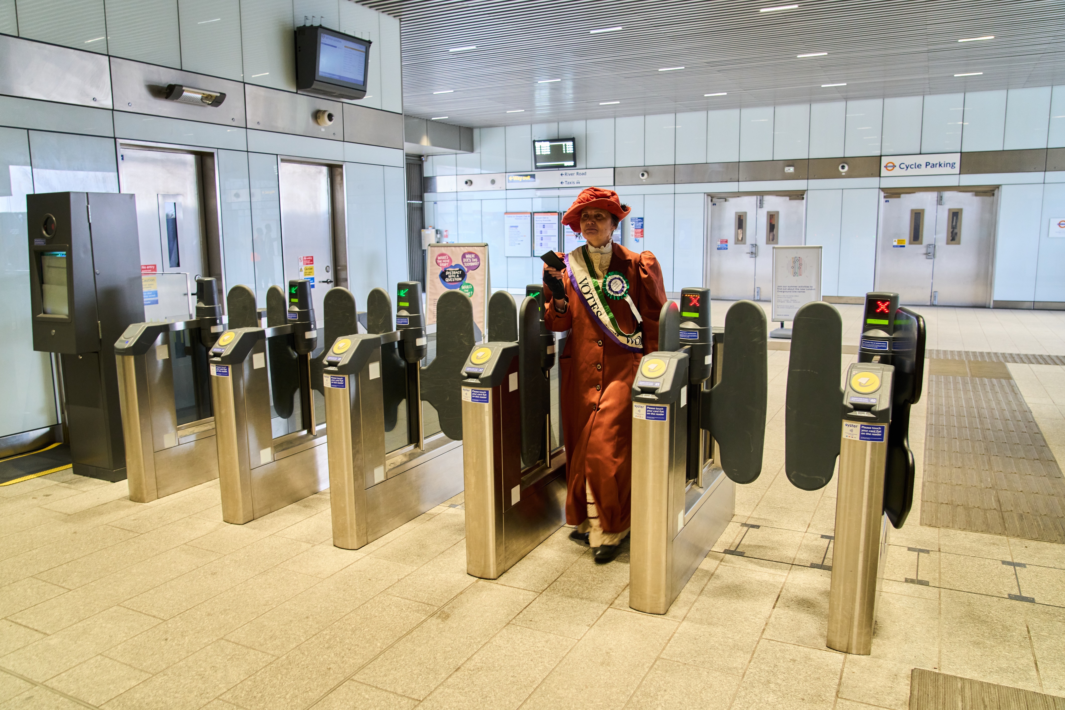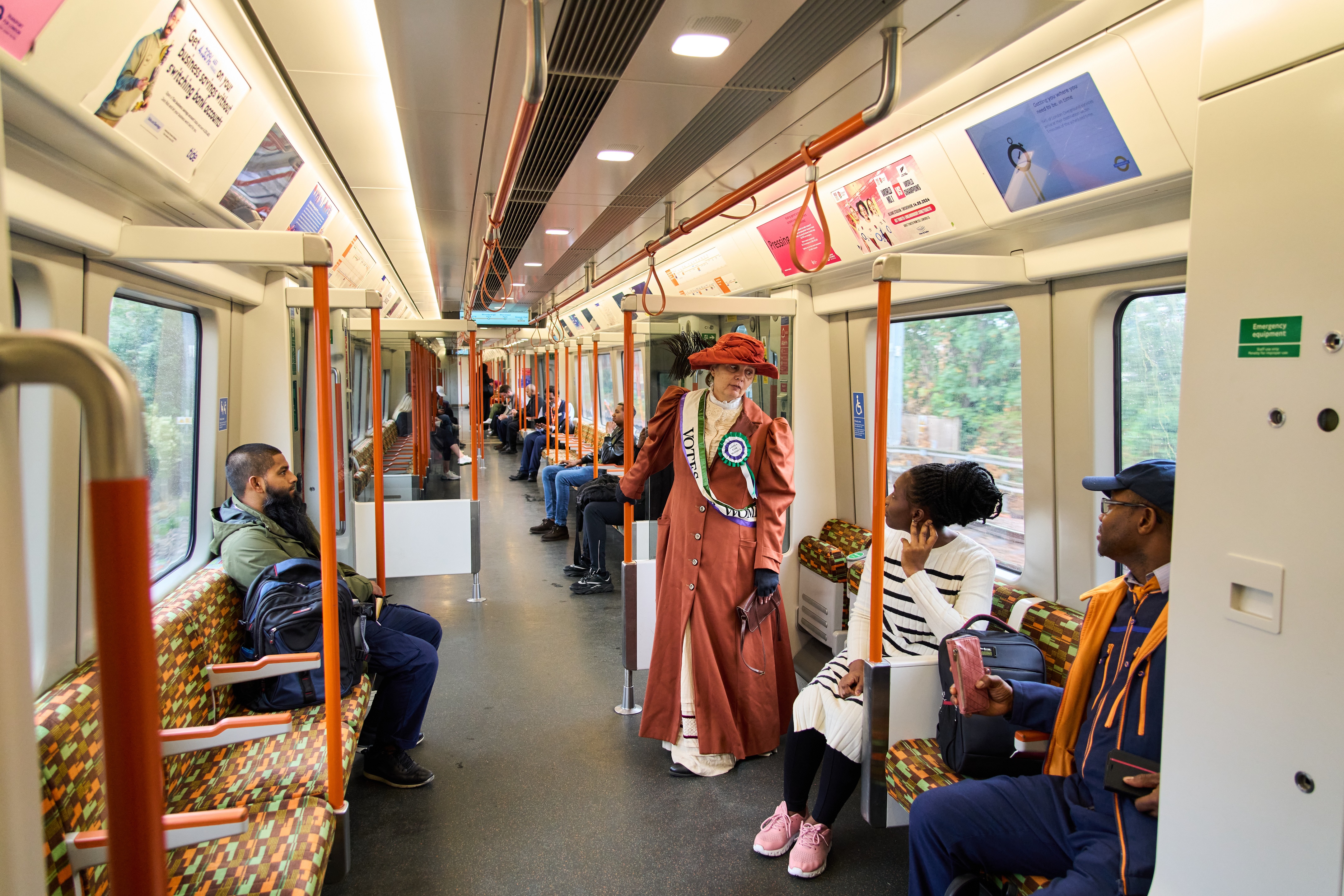 London Overground customers were treated to a surprise this week as an actress dressed as Suffragette leader, Emmeline Pankhurst joined them on what will become the Suffragette line this autumn to mark the release of Transport for London’s (TfL’s) new Mind the Gap podcast episode.