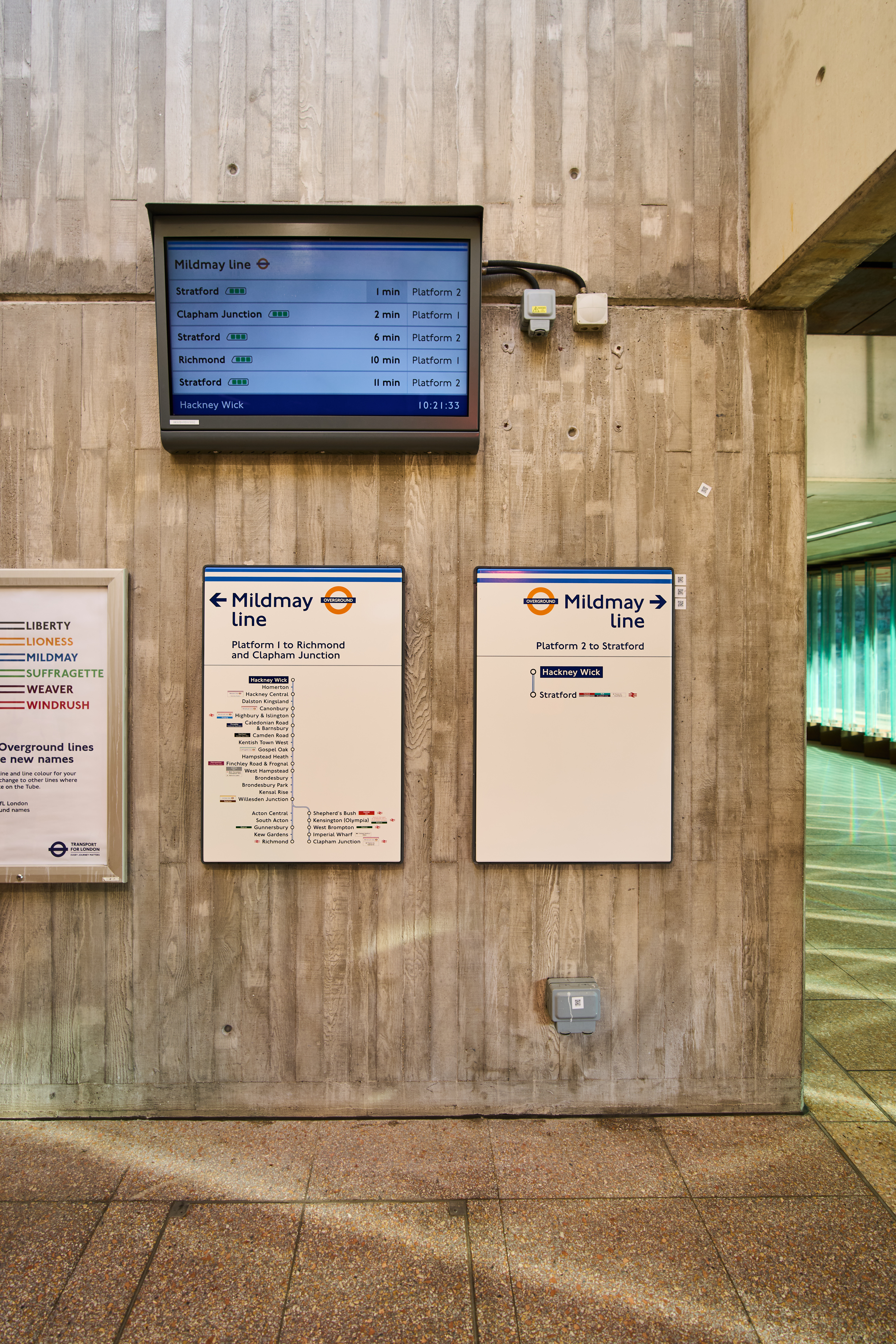 TfL Image - Direction signs and screen at Hackney Wick station.jpg