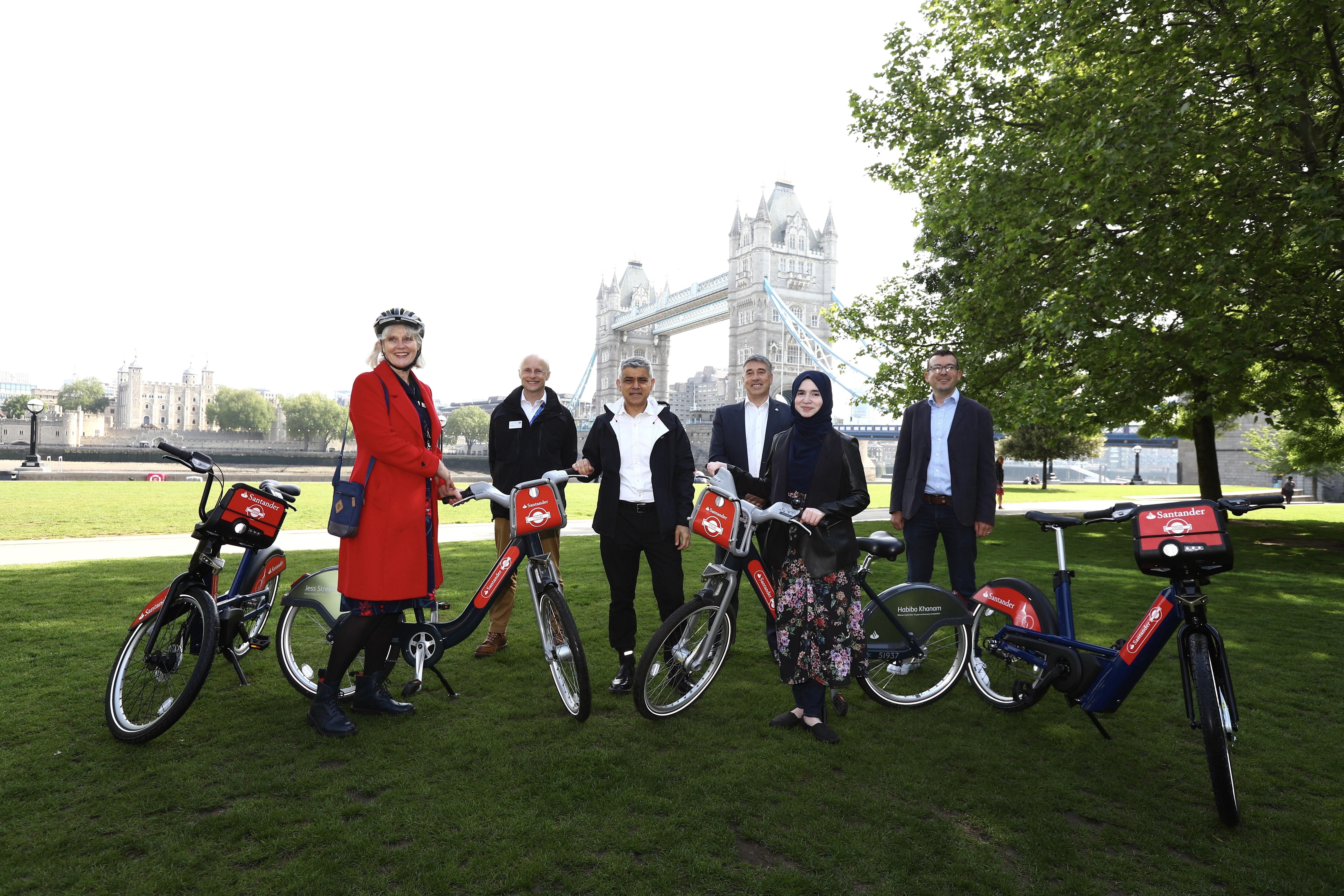 TfL Image - Sadiq Khan, Andy byford, Will Norman, NAthan Bostock with Jeesica Streeting and Habiba Khana, winners of TfL Cycle Hire 10th anniversary competition.jpg
